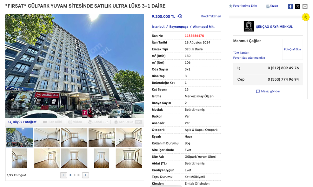 Gayrimenkul danışmanı, satış sürecinde doğru fiyatlandırma, etkili pazarlama, alıcı bulma, pazarlık ve resmi işlemleri yöneterek sizi olası risklerden korur. Bu nedenle danışman desteği almak, hem güven hem de hız kazandırır. ŞenÇağ Gayrimenkul olarak biz, şeffaf çalışma anlayışımız ve uzman ekibimizle mülkünüzü doğru stratejiyle pazara çıkarır, en kısa sürede ve en doğru fiyata satılmasını sağlarız.